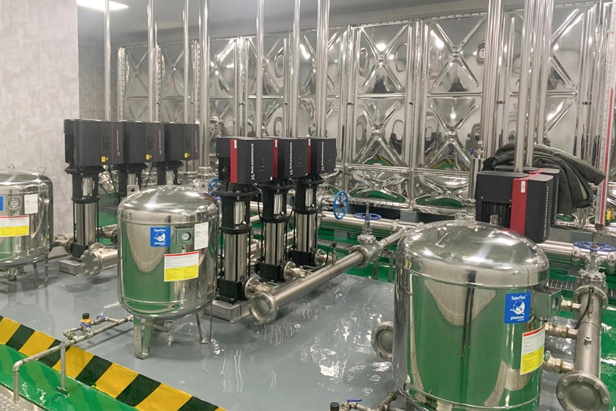 Tá líne táirgthe uathoibrithe caighdeánaithe againn le héifeachtúlacht táirgthe ard agus soláthar flúirseach. Tá os cionn 100 tacar de threalamh próiseála éagsúla againn, lena n-áirítear gléas hiodrálach cliste 2,500 tonna, róbait táthúcháin atá uathoibrithe go hiomlán, agus níos mó, chun freastal ar riachtanais táirgthe trealamh soláthair uisce éagsúla. Déanann ár gcuideachta uasmhéadú agus nuálaíocht leanúnach ar phróisis táirgthe, déanann sí rialú docht ar cháilíocht an táirge, agus déanann sí iarracht feabhas a chur ar cháilíocht, feidhmíocht agus feidhmiúlacht gach táirge.